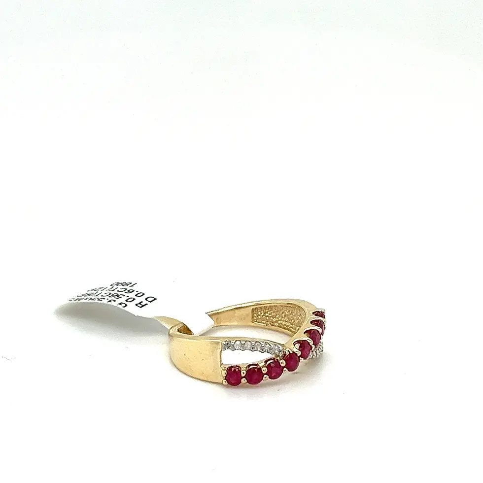 14K Yellow Gold Round Ruby & Diamond Ring/Elegant Gift for Her